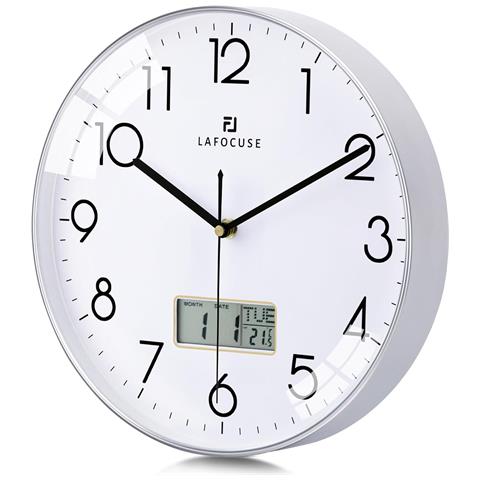 Argento Lafocuse Orologio Da Parete Con Datario E Termometro Lcd,