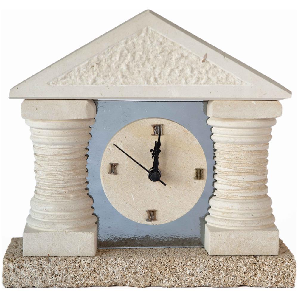 Orologio TEMPIO con COLONNE scultura decorazione bomboniera in Carparo e Pietra Leccese salentina misure 23 x 23 cm