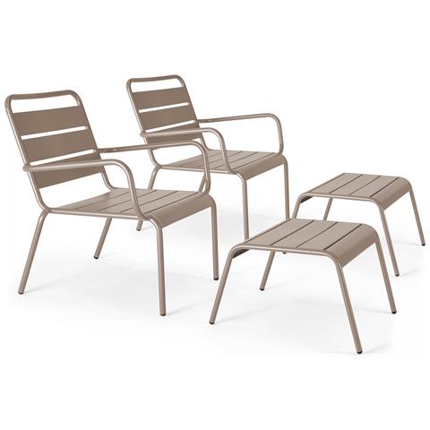 Set Di 2 Poltrone Relax Con Poggiapiedi In Metallo Color Talpa - Palavas