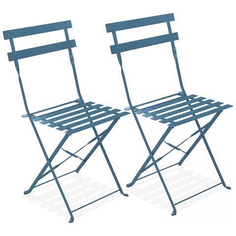 Set Di 2 Sedie Pieghevoli In Acciaio Blu Pacifico