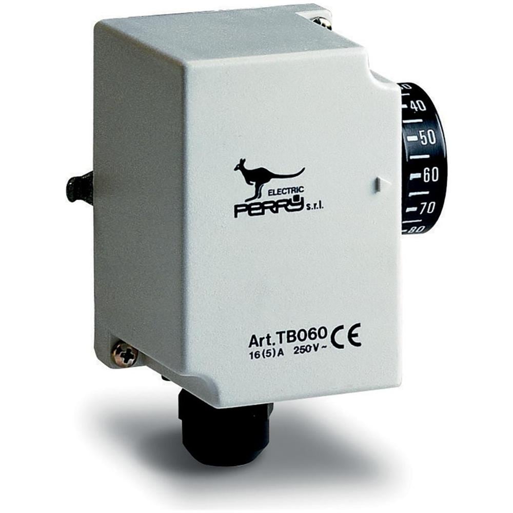 Termostato A Contatto Meccanico Perry 1tctb060 Per Montaggio Su Tubazioni Con Reggia Elastica In Dotazione Campo +30°c A +90°c Scala Graduata Con Indice Di Regolazione 1 Livello Temperatura Con Regolazione Continua Contatto 16 (5) a 250v Ip 20