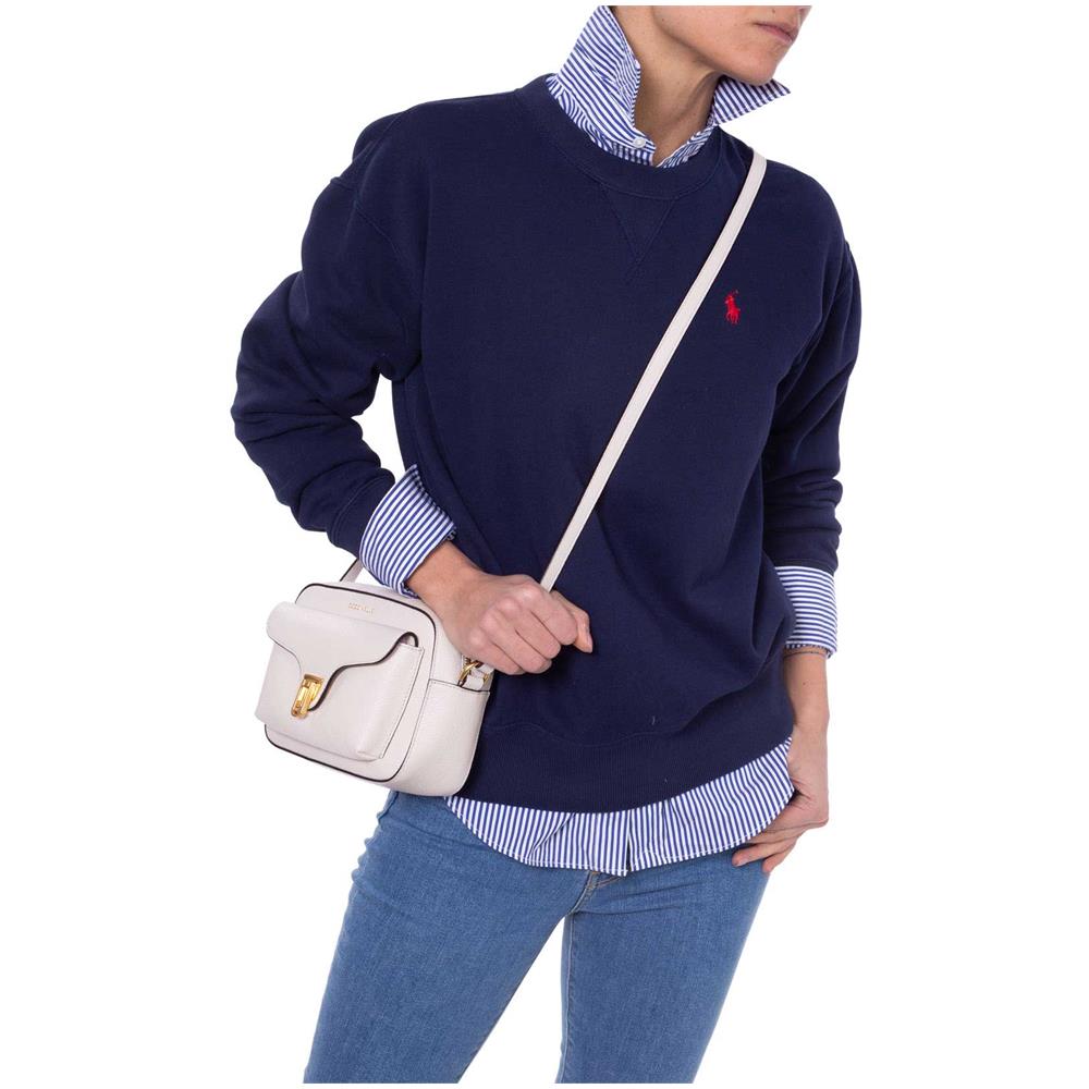 Felpa in misto cotone brushback pesante blu navy, dal taglio ampio e rilassato. Design con maniche lunghe e ampie a raglan, e collo a giro. Orlo, scollo e polsi in maglia a coste, e iconico pony polo ralph lauren ricamato in rosso signature sul cuore.