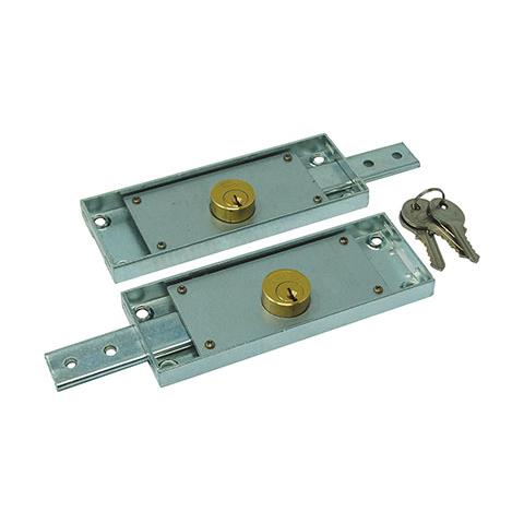 Cifratura ka a coppia. Con cilindro tondo fisso da mm. 25 di diametro. Per installazione laterale con catenaccio dritto a 1 mandata. Corsa catenacci mm. 25. Scatola in acciaio zincato da mm. 155x56, spessore mm. 15. In dotazione: 3 chiavi piatte.