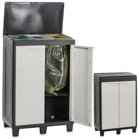Toomax factory mobile raccolta differenziata a 2 ante con 1 ripiano 65x38xh94 cm - bianco / nero. Mobiletto portaoggetti, modello dotato di postazioni per raccolta differenziata. Colore bianco / nero.