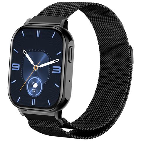 Smartwatch elegante nero, elysium di proove. Schermo amoled da 2.04''. Monitoraggio salute completo. Modalità sport: corsa, ciclismo, camminata, ecc. Design elegante con cassa in lega aeronautica, vetro diamantato e cinturino milanese. Notifiche in tempo reale. Autonomia da 5 a 7 giorni. Memoria esterna 256 mb. Impermeabile ip68. Compatibile con ios, android e harmonyos tramite app da fit.