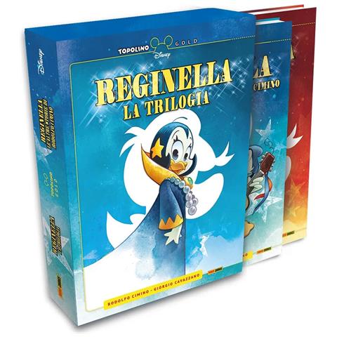 Questo volume della collana Topolino Gold chiude il ciclo delle storie di Reginella scritte dal grande Rodolfo Cimino, con la riproposta di Reginella e la minaccia terrestre (disegnata da Giorgio Cavazzano, assistito all'inchiostrazione da una giovane Silvia Ziche) e Paperino, Reginella e il terribile Vampirione, con le tavole di Antoni Bancells Pujadas. Come sempre, le storie sono accompagnate...