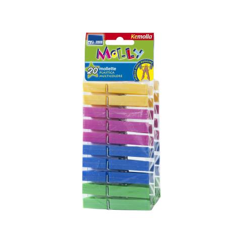 Mollette Bucato Plastica 20 Pezzi Multicolor