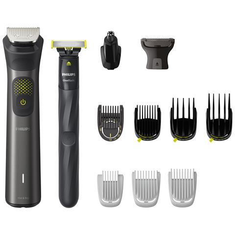 Philips All-in-One Trimmer MG9530/15 Serie 9000. Colore del prodotto: Grigio, Lunghezza minima del taglio: 0,2 mm, Lunghezza massima del taglio: 2 cm. Alimentazione: Batteria, Tempo di funzionamento: 120 min, Tipo batteria: Batteria integrata. Accessori inclusi: Philips OneBlade