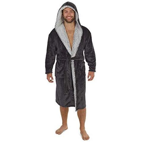 Vestaglie Men Molle Eccellente Con Cappuccio Accappatoio In Grigio O Blu Caldo Uomo Cozy Fleece Accappatoio Biancheria Da Notte Robes Per Uomo Regali Per Gli Uomini (m Nero Carbone)