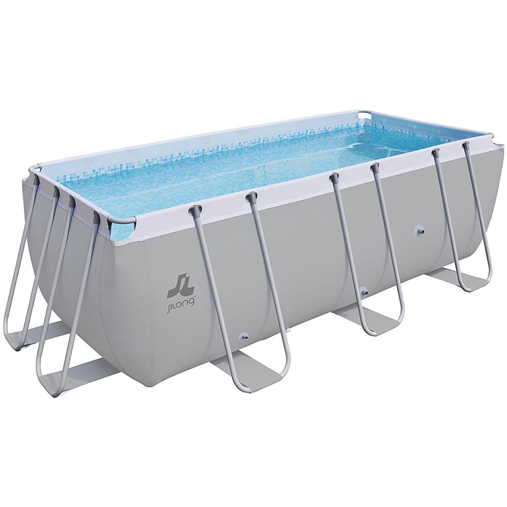 Piscina Fuoriterra Rettangolare Jilong Cm 400x207x122 Grigia Con Struttura In Acciaio Con Pompa Filtro E Scala