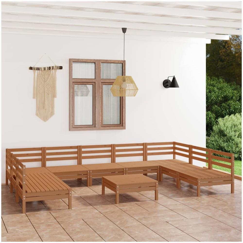 Set Divani Da Giardino 10 Pz Miele In Legno Massello Di Pino