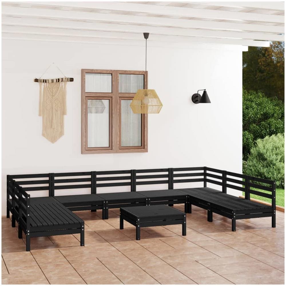 Set Divani Da Giardino 10 Pz Nero In Legno Massello Di Pino