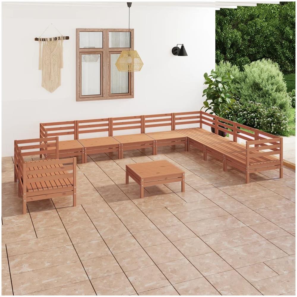 Set Divani Da Giardino 11 Pz In Legno Massello Di Pino Miele