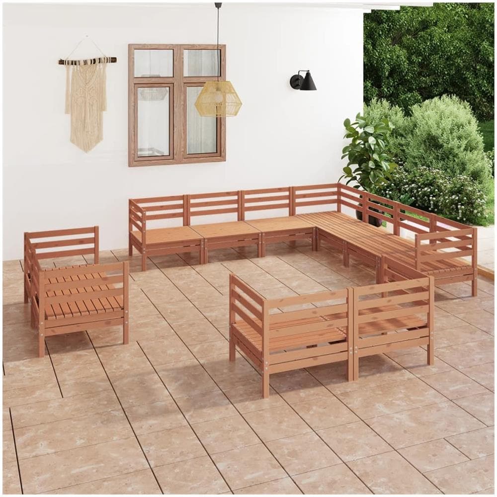 Set Divani Da Giardino 11 Pz In Legno Massello Di Pino Miele