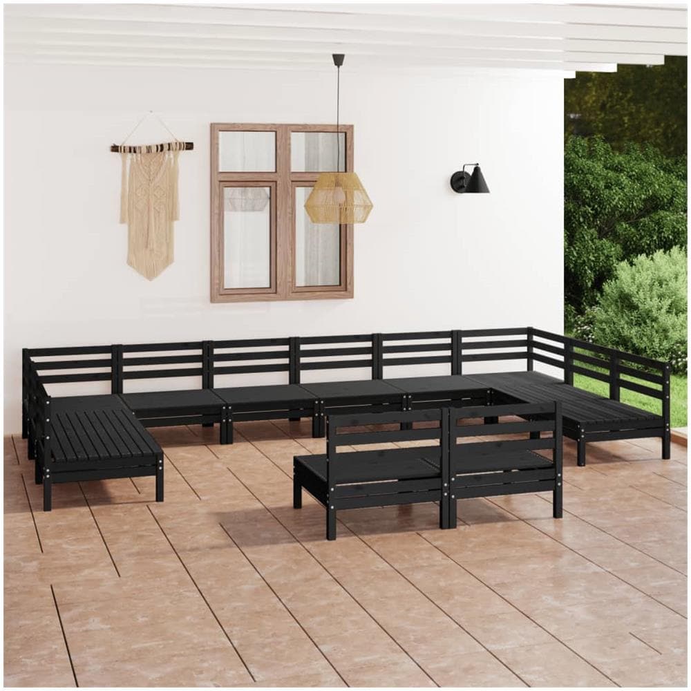 Set Divani Da Giardino 12 Pz Nero In Legno Massello Di Pino