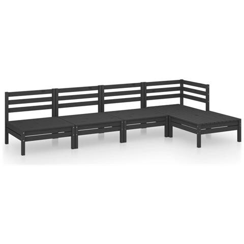 Set Salotto da Giardino 5 pz in Legno Massello di Pino Nero