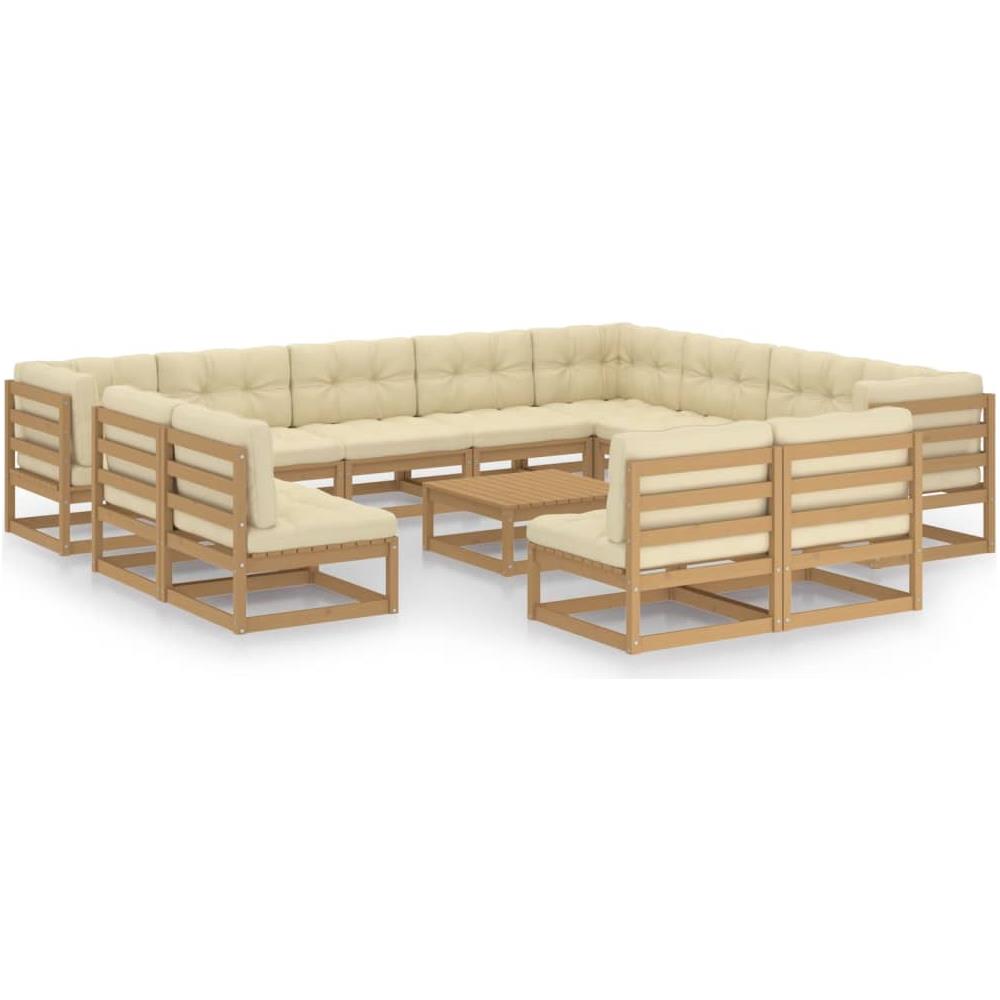 Set Divani Giardino 13pz Cuscini Marrone Miele Massello Di Pino