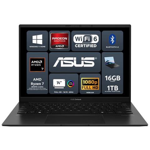 Notebook Zenbook 14 Oled UM3406HA-QD065W Monitor 14" WUXGA AMD Ryzen™ 7 8840HS Ram 16 GB SSD 1 TB 1 x 3.2 Gen 1 Type A 1 x 3.2 Gen 2 Type C Windows 11 Home