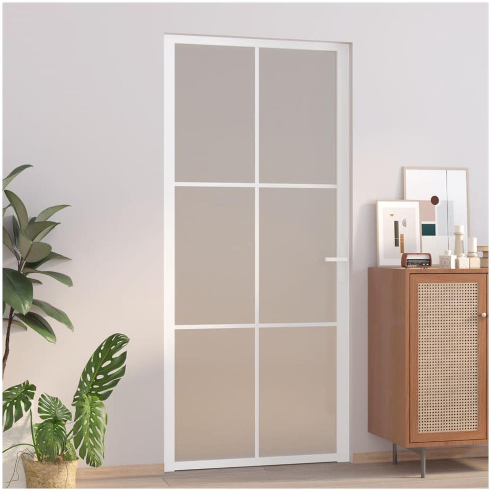 Porta Interna 93x201,5 Cm Bianco Opaco Vetro E Alluminio