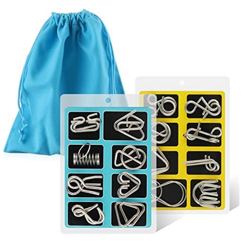 Include 16 diversi puzzle in filo metallico, goditi ore di divertimento con la tua famiglia e i tuoi amici progettato per mettere alla prova il tuo cervello, la pazienza e la coordinazionebr > sforzati di separare i due pezzi e stupisci i tuoi amici buono per il pensiero creativo e migliora entrambi il tuo qi e qe adatto a tutti, soprattutto a coloro che amano mettersi alla provab > piccole par...