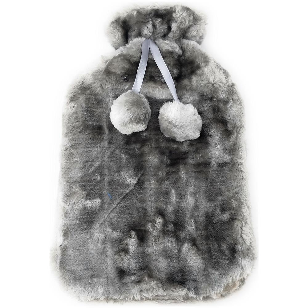 Lusso Accogliente Bottiglia Pelliccia Sintetica Pom Pom Acqua Calda - 2 Litri (slate Gray)