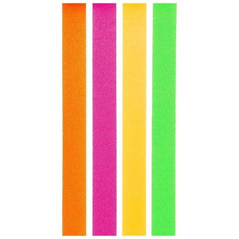 4 nastri adesivi in diversi colori appariscenti e fluorescenti. Nei colori solidi arancione, rosa, giallo e verde, i piccoli nastri adesivi fluorescenti ravvivano i vostri progetti di scrapbooking festivi. I colori al neon fanno brillare le decorazioni su biglietti d'auguri, quaderni e oggetti su diversi materiali.