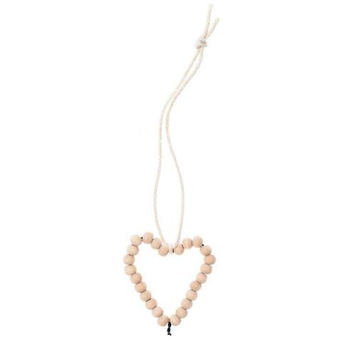 Piccolo Ciondolo A Forma Di Cuore In Legno Decorato Con Perline