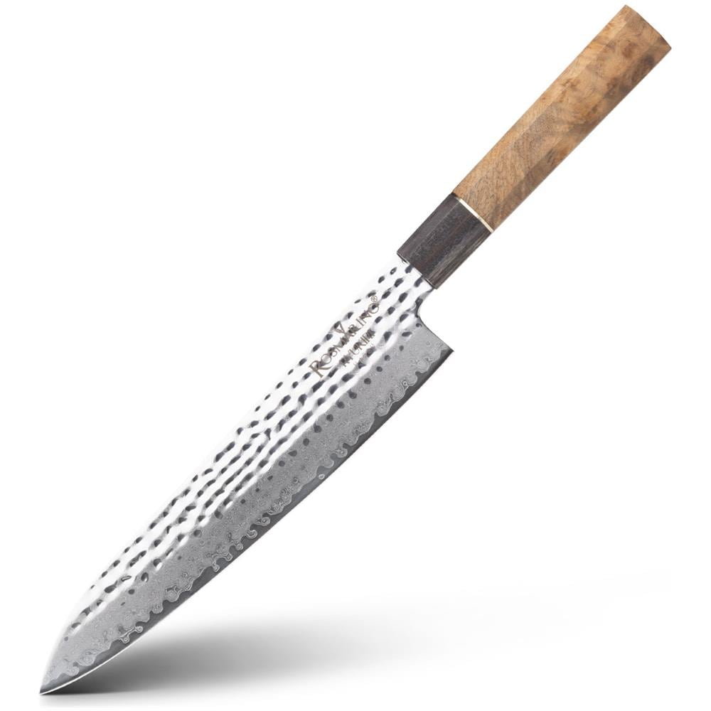Coltello da Cucina Giapponese RyuKiri Gyuto | Coltello da Chef Estremamente Affilato e Altamente Resistente | Acciaio Inossidabile AUS-10 | Motivo Onde di Damasco e Manico in Legno | Taglio Preciso, Facile e Sicuro