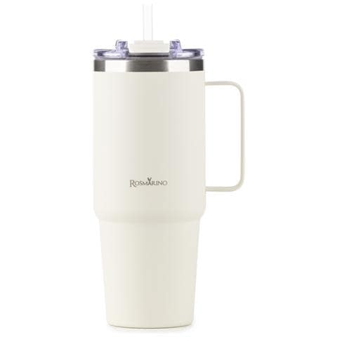 Tazza Termica da Viaggio con Coperchio, Manico e Cannuccia, Borraccia in Acciaio Inossidabile di Alta Qualità, Per Bevande Calde o Ghiacciate, 870 ml, Colore Beige