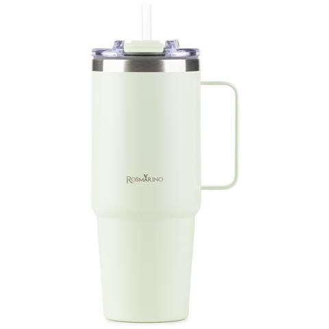 Tazza Termica da Viaggio con Coperchio, Manico e Cannuccia, Borraccia in Acciaio Inossidabile di Alta Qualità, Per Bevande Calde o Ghiacciate, 870 ml, Colore Verde Pastello