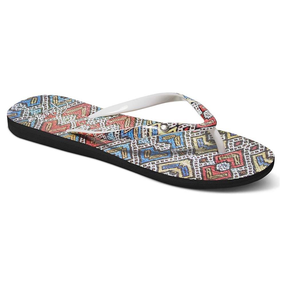 Scarpe donna infradito roxy portofino. Caratteristiche: - tomaia aderente in pvc stampato con spilla logata- plantare in gomma liscia con grafiche- suola in gommaspecifiche tecniche: composizione: - tomaia: 95% plastica / 5% metallo- suola: 100% spugna di gomma.