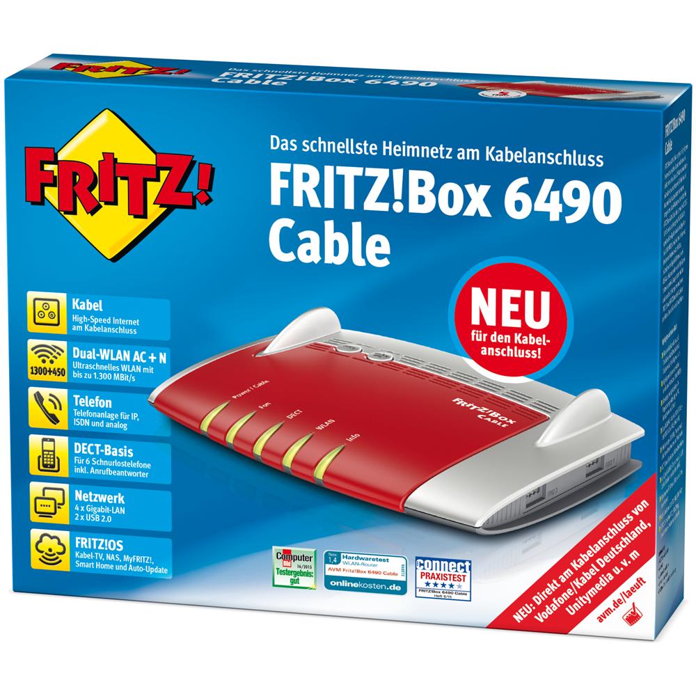 AVM FRITZ!Box 6490, router con cavo Wi-Fi CA + N (docsis 3.0 cavo modem di collegamento, fino a 1.300 Mbit / s (5 GHz), telefono VoIP, DECT base)