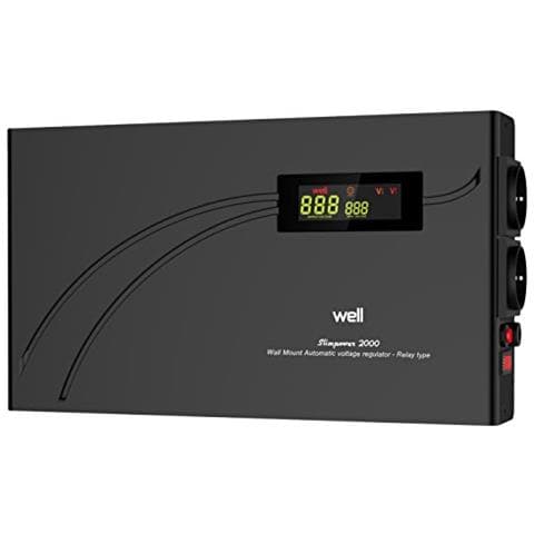 Well Automatic Voltage Stabilizer With Relay 2000 va / 1200 w Horizontal Black 1 pezzi, Avr Rel Slim Power 2000 wl