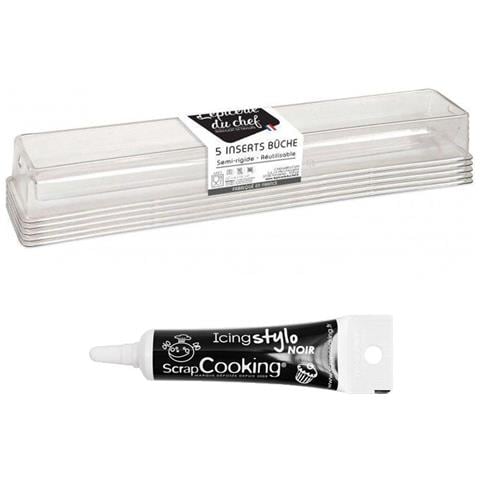 5 Inserti Riutilizzabile Per Tronchetto Di Natale + Penna Per Glassa Nera