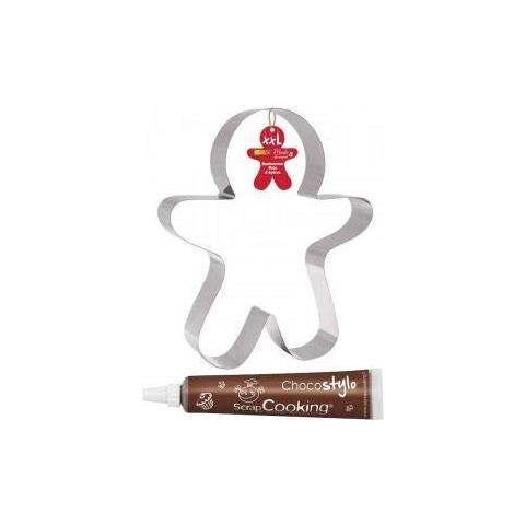 Tagliabiscotti Xxl In Acciaio Inox Omino Di Marzapane + Penna Alimentare Al Cioccolato
