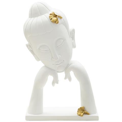 Elegante testa di buddha finemente decorata con foglie dorate. questa scultura è la soluzione perfetta per completare l'arredamento della tua casa. E' un elemento di design versatile che si adatta ad ogni ambiente della casa, dalla zona giorno alla zona notte. Facile da pulire. collezione: elmer colore: bianco, oro materiale: poliresina set: 1 dimensioni prodotto: l21,5xp13xa36 cm peso prodotto...