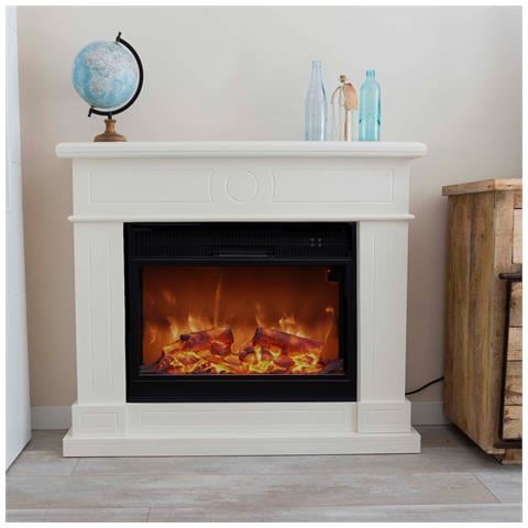 Camino Lipari Camino Da Pavimento Con Cornice E Bruciatore Elettrico Da 1500w Bianco