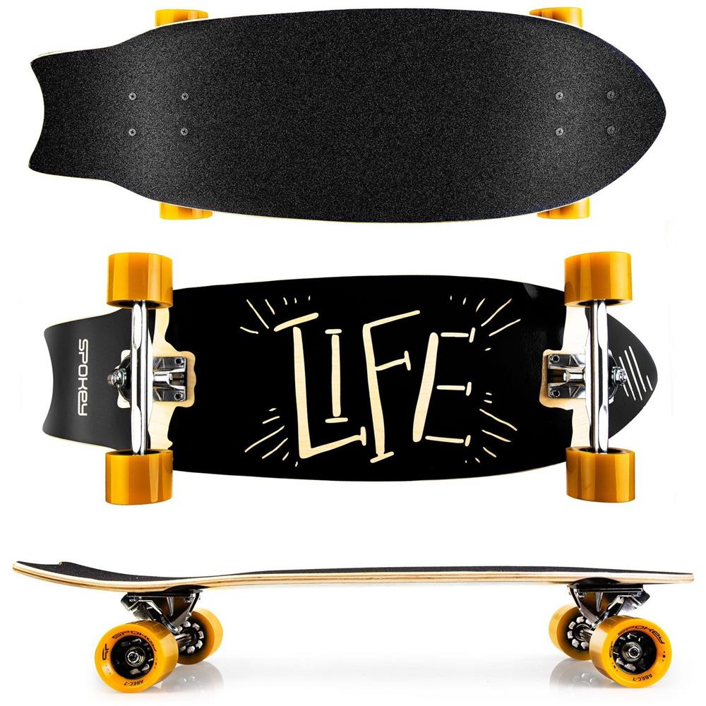 Nome del prodotto: skateboard life colore del prodotto : nero / arancione altre caratteristiche : lunghezza 67,5 cm tecnologia dei cuscinetti: abec-7 materiale : materiale della ruota - pu dimensioni : dimensioni della ruota - 70 x 51 mm peso massimo utente: 100 kg garanzia : 24 mese (i).
