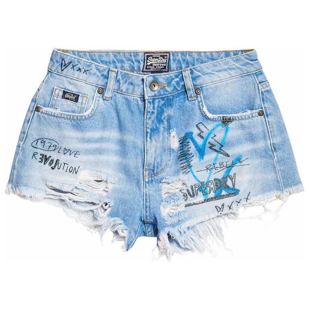 Abbigliamento donna pantaloni superdry eliza cut off. Pantaloncini donna tagliati eliza superdry. Classico modello in denim con autentica finitura a effetto consumato, molto di moda questanno. Presentano cinque tasche, una chiusura con cerniera e bottoni, e disegni a mano sul davanti e su una delle tasche posteriori. Sono impreziositi da unapplicazione del logo superdry denim sul taschino porta...