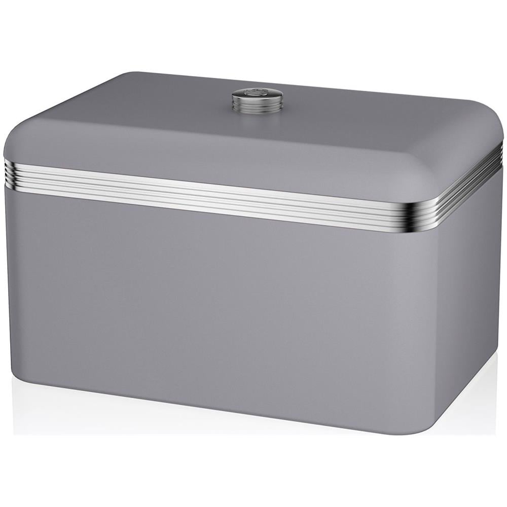 Swan Swka1010grn Retro Portapane 18 L, Design Vintage, Scatola Metallica, Bread Bin Grigio