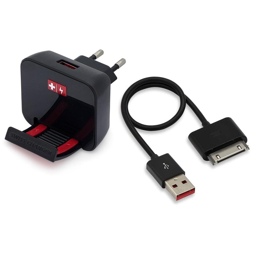 CARICATORE IPAD IPHONE DA VIAGGIO SWISS CHARGER SCH20011 Cavo 1A + USB a 30 PIN (ECO verde) 4897022972585