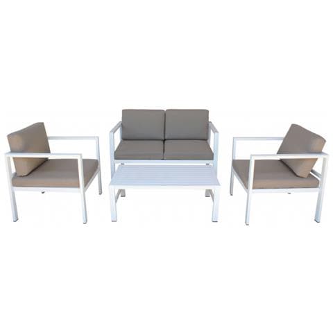 Salotti e divani cosma caratteristiche: colore: bianco larghezza: 126 / 68 / 80 cm profondità: 70 / 70 / 60 cm altezza: 64 / 64 / 35 cm peso: 30 kg struttura in allumino bianco o tortora o taupe o antracite cuscini taupe, per l'antracite cuscini antracite dimensioni: d. 126x70x64/p. 68x70x64/t. 80x60x35 informazioni: materiale: alluminio colore: bianco posti: 4 marcatura ce portata massima: 120...