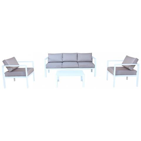 Salotti e divani cosma caratteristiche: colore: bianco larghezza: 184 / 68 / 80 cm profondità: 70 / 70 / 56 cm altezza: 64 / 64 / 35 cm peso: 33,7 kg struttura in allumino bianco o tortora o taupe o antracite cuscini taupe, per l'antracite cuscini antracite dimensioni: d. 184x70x64/p. 68x70x64/t. 80x56x35 informazioni: materiale: alluminio colore: bianco posti: 5 marcatura ce portata massima: 1...