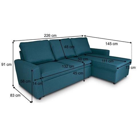 Divano Letto Angolare Con Contenitore, Divano Con Chaise Longue Blu Petrolio Mod. Kennedy