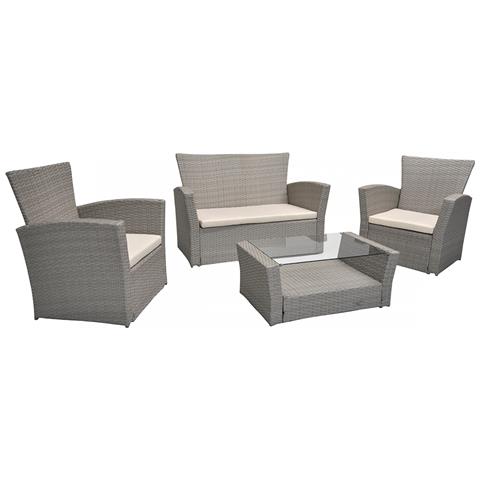 Salotto da giardino in rattan, set di divani da esterno in polyrattan tortora