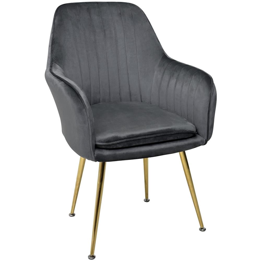 Sedia Da Pranzo In Velluto Grigio Antracite Poltroncina Vintage Mod. Celine