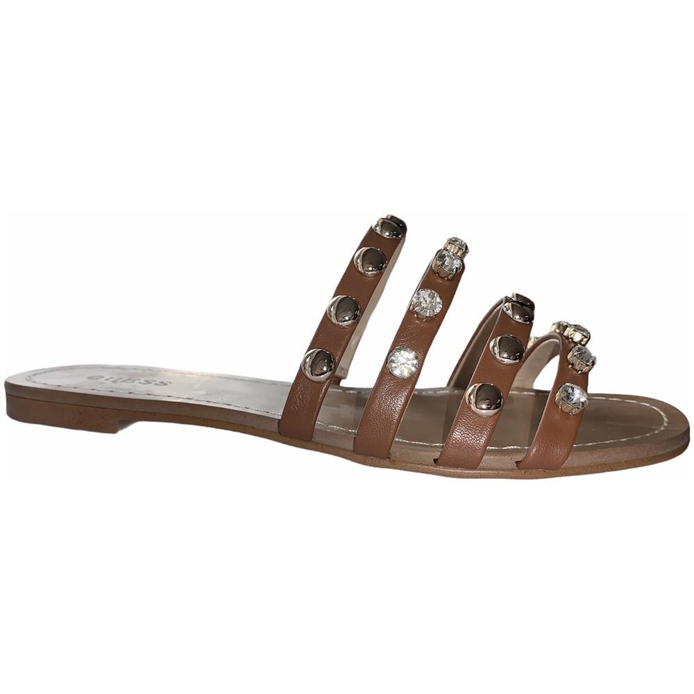 Guess tomaia: pelle applicazione strass tipo sandalo stile rock fodera: pelle plantare: pelle plantare: fisso caratteristica: sandalo fondo: gomma altezza tacco: 2cm chiusura: nessuna colore: marrone applicazione in metallo colore oro lavorazione artigianale nuova collezione fashion style.