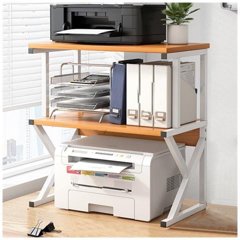 Supporto Per Stampante Scaffale Portaoggetti Multiuso Legno E Bianco 3 Livelli