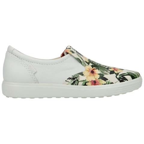 ecco soft 7 scarpe slip-on da donna bianche con fiori leggerescarpe da donna della rinomata azienda ecco. Realizzate con materiali di altissima qualità e con le più recenti tecnologie. Tomaia in pelle. Interno in pelle. Soletta in pelle rimovibile con ecfs (circolazione dell'aria) forma completamente anatomica per una calzata confortevole. La suola in materiale pu /tpu è molto leggera e confort...