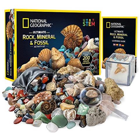 Kit National Geographic Rocks & Fossili Un Set Di Oltre 200 Pezzi Include Geodi, Veri Fossili, Quarzo Rosa, Diaspro, Avventurina E Molte Altre Rocce, Cristalli E Pietre Preziose